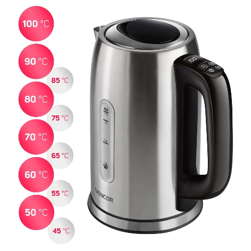 Rychlovarná konvice s termoregulací Sencor Rychlovarná nerezová konvice, objem 1,7 l, příkon 2400 W, LCD displej, nastavitelná teplota vody. 45000 bodů |