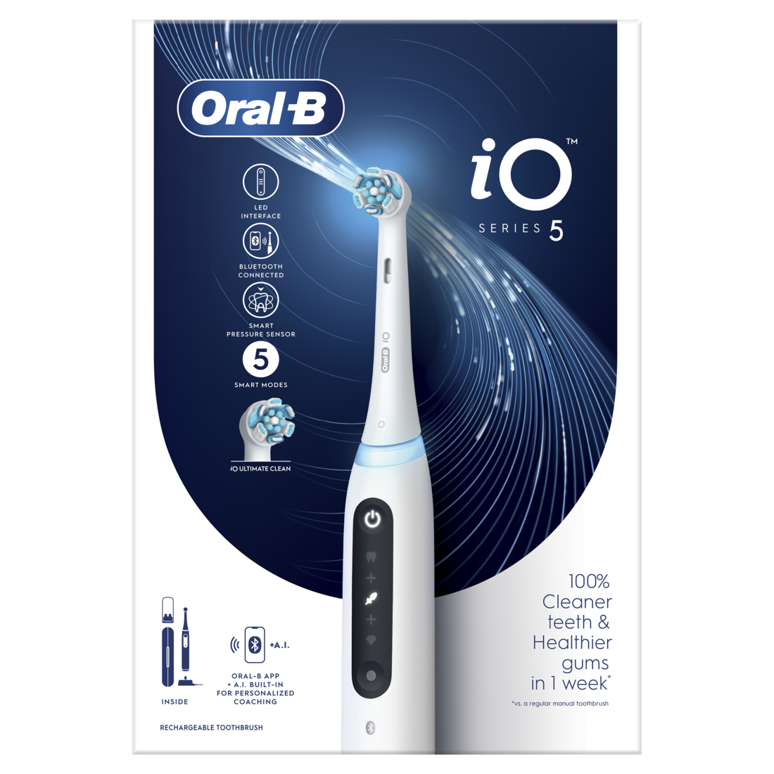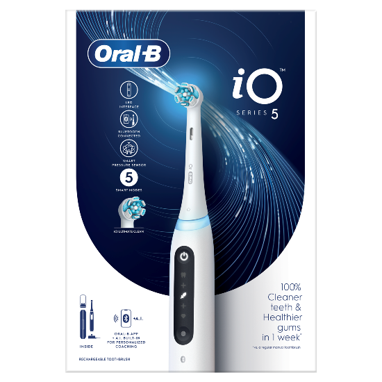 Elektrický zubní kartáček iO Series 5 White 5 režimů, bluetooth, časovač, tlakový senzor, indikátor baterie a 3D čištění, s mobilní aplikací 170000 bodů |