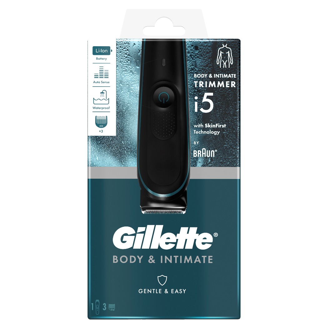 Zastřihovač Gillette i5 na tělo a intimní partie Elektrický bezdrátový voděoodolný zastřihovač,technologie SkinFirst,3 nástavce,výdrž až 100 minut 60000 bodů |
