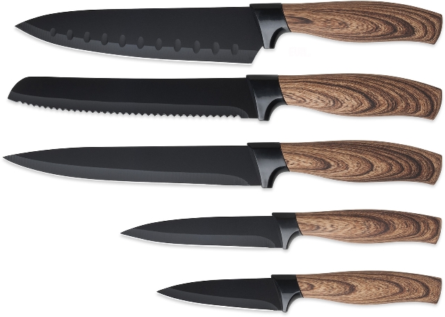 Sada nožů Kitchisimo 5 ks V dárkové krabičče, s nepřilnavým povrchem, rukojeť v imitaci dřeva, vhodné do myčky nádobí. 20000 bodů |