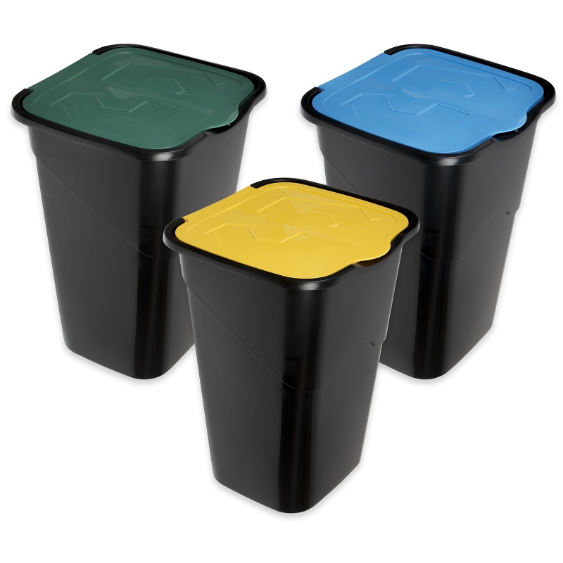 Koše na tříděný odpad 3x50 l Sada plastových košů s víkem na tříděný odpad 3x50 l. 30000 bodů |